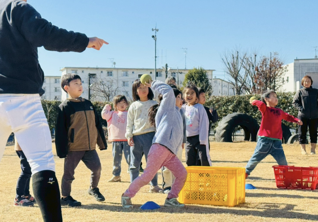 教室が始まると、園児たちは驚くほど積極的だった。怖がる園児はほとんどいなく、全員が笑顔でボールを投げ続けた。