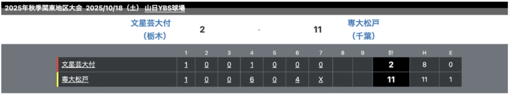 序盤は拮抗した展開ながら、4回以降の集中打で一気に試合を決めた専大松戸。夏に続く強力打線の健在ぶりを示し、秋の関東大会でも主役候補としての存在感を放った。一方の文星芸大付は序盤のチャンスを生かしきれず、投手陣が踏ん張れなかったが、攻撃の形は確かに見えた。互いの成長と課題が明確になった一戦だった。